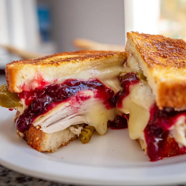Save A festive, spicy-sweet twist on the classic grilled cheese, featuring juicy turkey, tangy cranberry sauce, melty cheese, and a kick of jalapeño, all toasted to golden perfection in the air fryer.