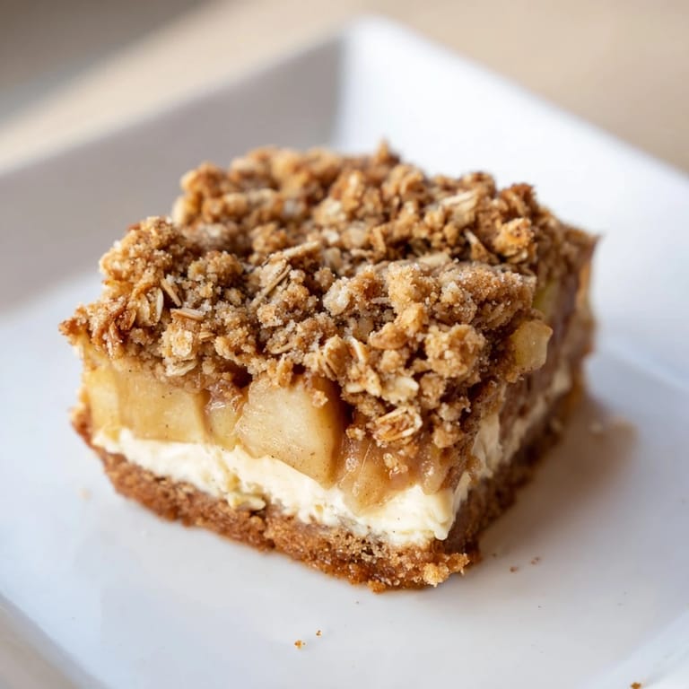 Save Cream cheese, apple, and spiced oat layers combine for a comforting dessert bar with creamy, crunchy, and warmly spiced flavors in every bite.