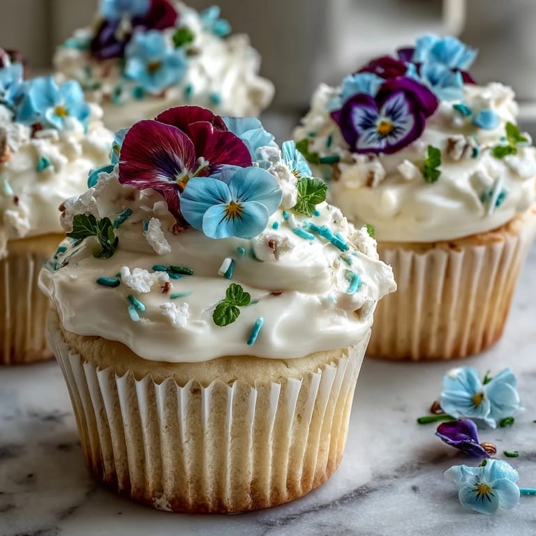 Customize these cupcakes to suit your occasion or taste preferences. For a citrus twist, add the zest of one lemon to the cupcake batter for a bright, floral note that complements the edible flowers beautifully. You can also tint the buttercream with natural food coloring in soft pastels—blush pink, lavender, or mint green—to match your party theme. For a dairy-free version, substitute plant-based butter and milk alternatives. If you prefer chocolate, swap the vanilla extract for almond extract and add cocoa powder to half the buttercream for a marbled effect. The decoration possibilities are endless: use seasonal flowers in summer, crystallized violets in winter, or even fresh berries alongside the blooms.