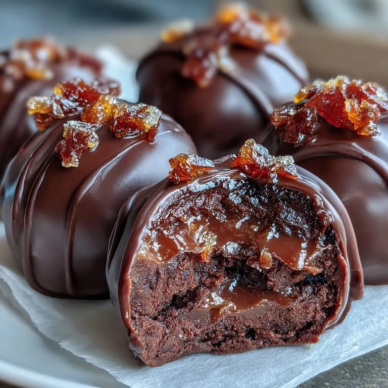 Save There's something about the scent of citrus zest bubbling away in sugar syrup that makes you feel like you're doing something luxurious, even in an ordinary kitchen. I discovered these candied orange truffles while experimenting with flavor combinations one winter afternoon, and what started as a casual attempt at impressing someone turned into my go-to gift for people I actually care about. The pairing of bitter dark chocolate with that bright, syrupy orange center is so elegantly simple that it somehow feels like you've done far more work than you actually have. Now whenever I make them, I'm reminded that the best recipes are the ones that look impressive but don't demand perfection from you.