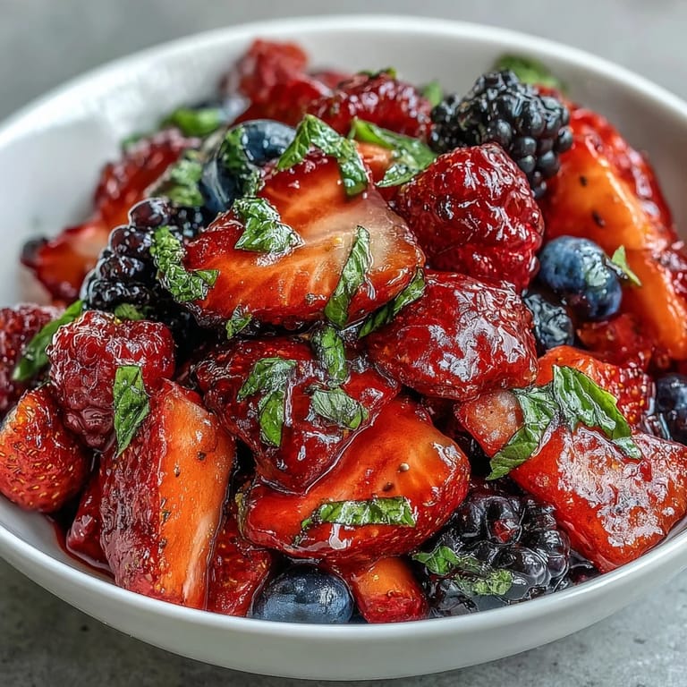 Save There's something magical about the simplicity of a fresh berry salad on a warm summer day. This colorful medley celebrates the peak of berry season, combining the sweet-tart flavors of strawberries, blueberries, raspberries, and blackberries into a refreshing treat that requires no cooking, just a few minutes of gentle preparation.