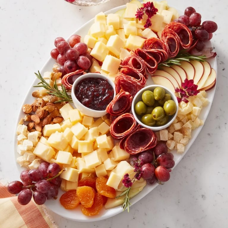 - Nuts & Extras: 1/2 cup roasted almonds, 1/2 cup marinated olives, 1/2 cup dried apricots, 1/3 cup honey or fig jam