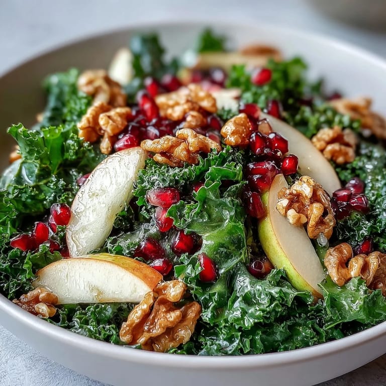 Save There's a moment after you toss everything together when you step back and see the deep green kale studded with ruby pomegranate seeds and pale apple slices, and it just looks alive. I made this for myself on a gray winter afternoon once and realized that eating something this vibrant actually shifted my mood. Food doesn't have to be complicated to feel like it matters.