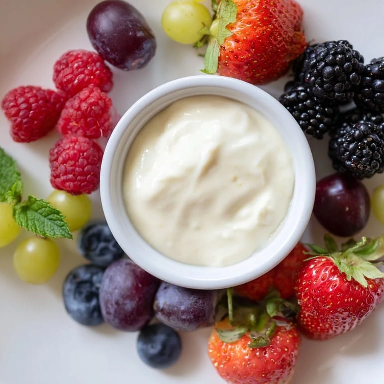 Save A festive and vibrant platter featuring fresh berries and a luscious, creamy dip β perfect for holiday gatherings or a cheerful dessert.