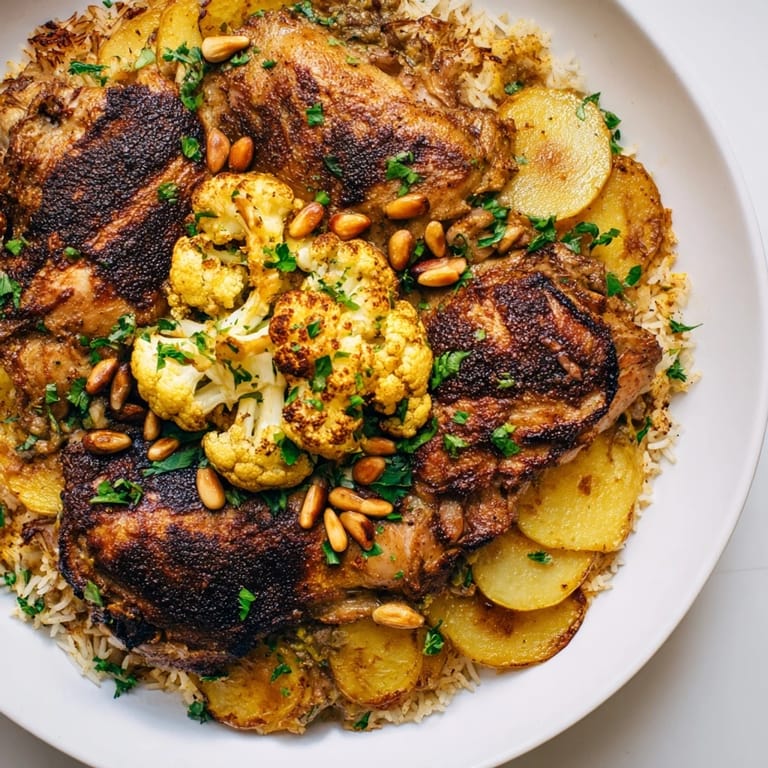 Save The first time I watched my neighbor invert a pot of maklouba onto a platter, I held my breath. This Palestinian dish is pure theater: fragrant rice, tender chicken, golden vegetables all layered together, then flipped with one decisive motion to emerge as a stunning, aromatic dome. It felt like magic, but really it's just patience and a heavy pot. Now I understand why families gather around the moment of the flip, why it matters so much to get this right.
