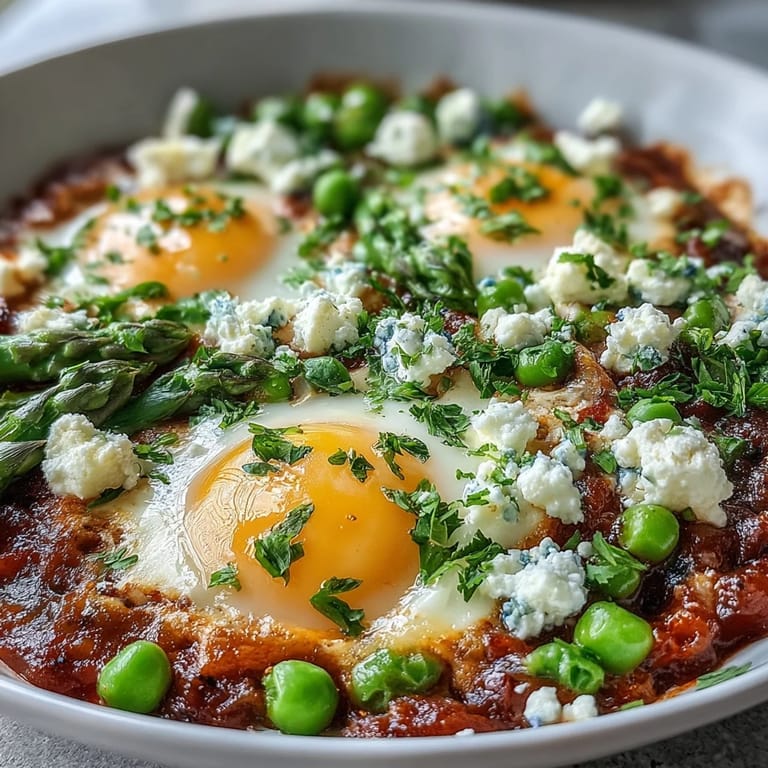 Save Spring arrived late one year, and I found myself staring at a farmers market overflowing with tender peas and broad beans, their vibrant green practically glowing under the morning sun. My usual egg-based breakfast felt too heavy for the season, so I thought: why not turn those fresh vegetables into something warm, saucy, and substantial? This shakshuka emerged from that impulse, and it's become the dish I make whenever I want to feel the earth's generosity on a plate without any fuss.