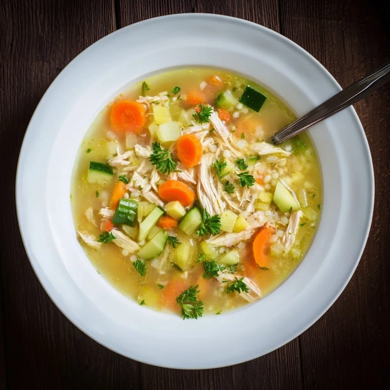 This soup keeps beautifully in the refrigerator for up to four days, and I actually think the flavors improve after a night in the fridge. The vegetables continue to absorb the herbed broth, and the chicken remains tender. When reheating, add a splash of water or extra broth if needed because the soup will thicken as it sits. I avoid freezing this soup because the zucchini can become slightly watery when thawed, but honestly, it never lasts long enough in my house to consider freezing anyway.