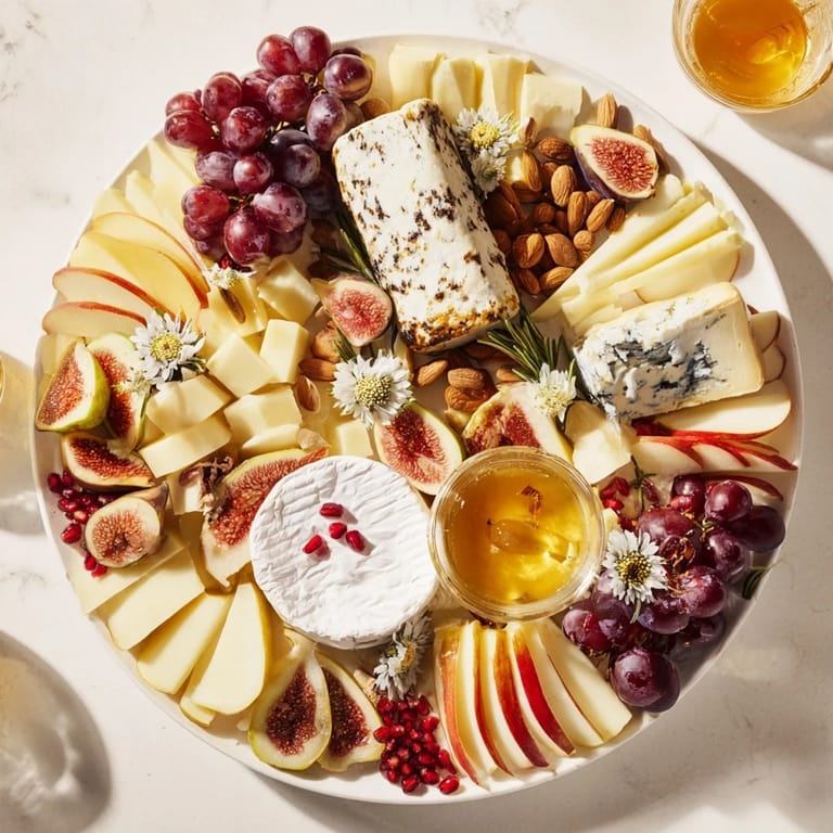 This cheese platter pairs beautifully with a crisp white wine or a sparkling rosé, enhancing the flavors and textures. Serve it at room temperature to allow the cheese to reach optimal creaminess and the fruits to highlight their natural sweetness. Ideal for holidays, celebrations, or as an impressive appetizer for entertaining guests.