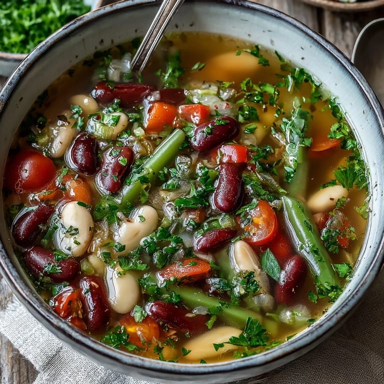 Save My neighbor Sarah showed up one afternoon with a jar of homemade three-bean salad, the kind with that sharp vinegar bite that makes your mouth wake up. I loved it so much that I started wondering what would happen if I turned that salad into a soup, keeping all that tangy brightness but making it warm and comforting. The first time I tried it, I was stirring the pot and suddenly realized I'd created something that felt both nostalgic and completely fresh, like discovering a song you forgot you loved.