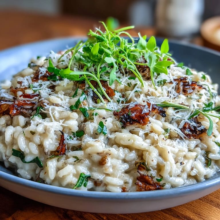 I made this for my partner's birthday dinner, and what I remember most isn't the compliments, though there were plenty, but the moment they closed their eyes after the first bite. The whole table went quiet in that way it does when food is genuinely delicious, and I realized the truffle oil had done its job—it had transformed something familiar into something that felt like a gift. That's when I understood risotto isn't actually about showing off; it's about the care you pour into those thirty minutes of stirring.