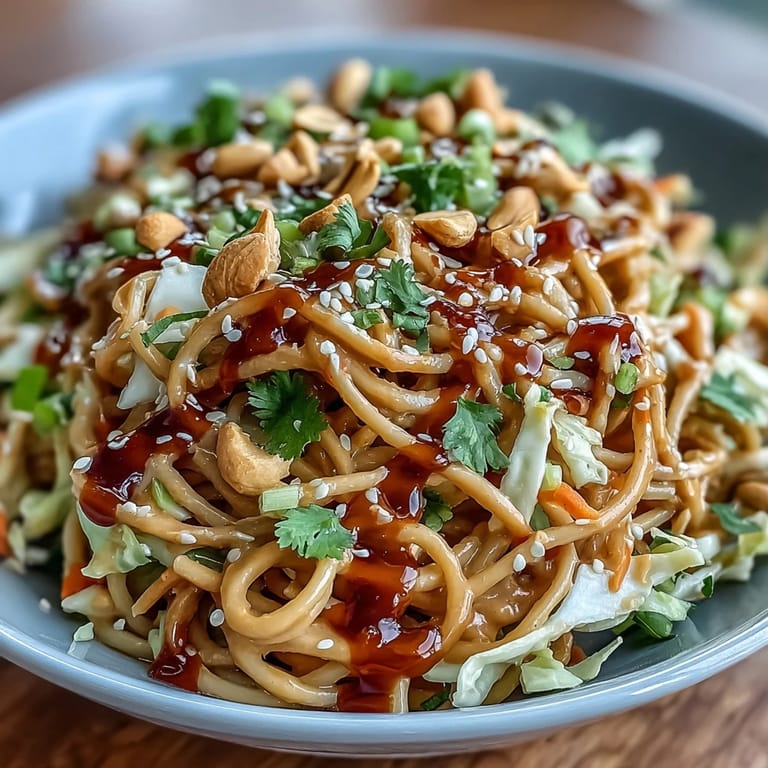 Save I discovered this salad on a sweltering afternoon when my fridge felt impossibly bare except for a half-empty jar of peanut butter and some wilting cabbage. Instead of ordering takeout, I boiled water for soba noodles and started slicing vegetables with no real plan, just curiosity. By the time I whisked together that spicy peanut dressing, something magical happened—the kitchen filled with the aroma of sesame and garlic, and suddenly I had something better than any delivery could offer.